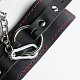 Изделие выполнено из одного слоя натуральной кожи с мягким ремешком и стальным кольцом , которое добавляет конструкции прочности и современный шарм. Декоративная строчка красного цвета по краям подчеркивает стильный дизайн и добавляет изделию игривости. В комплект входит соединительный элемент из кожи с двумя надежными карабинами , которые обеспечивают стабильность и контроль.