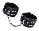 Наличие двух колец и карабинов, соединенных между собой металлической цепочкой, позволяет использовать изделие как раздельно – аксессуар-манжеты, так и как оковы для фиксации. К широким металлическим кольцам также можно присоединить и другие аксессуары при помощи карабинов.
