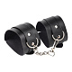 Черные наножники из искусственной кожи с цепным креплением. Ширина - 5 см.