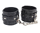 Наручники мягкие на цепочке с карабином. Широкие манжеты на пряжках для рук. Материал - искусственная кожа, внутренная часть с мягким наполнителем, металл.