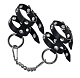 Стильный БДСМ-аксессуар изготовлен из черной натуральной кожи полностью вручную. Материал качественный, прочный и тактильно приятный на ощупь. Каждый ремешок по всей длине оснащен пятью металлическими люверсами, чтобы идеально подобрать размер запястья для сабмиссива. Крепкий замок фиксирует необходимый захват. Девайс идеально подходит для долговременного использования. Наручники соединены между собой цепью с помощью надежных карабинов. Ширина манжет - 5,5 см.