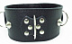 Черный кожаный ошейник с короткими шипами. Имеет три кольца для карабинов, три ряда заклепок-застежек. Размер регулируется. Ширина - 5,4 см.