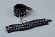 Наручники фигурные, профурнитуренные заклепками, окантованные кожей на подкладке. Анатомическая форма. Подкладка: синтетическая пена, обтянутая мягкой кожей или замшей. Минимальный обхват руки - 21 см., максимальный обхват руки - 26 см.