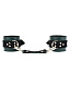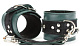 Оковы выполнены из натуральной кожи. Изделие декорировано ремнями из замши. Посредине аксессуара расположено полукольцо из сварной фурнитуры. Оковы надежно фиксируются пряжками и ремнями, позволяющими выбрать нужный размер, кожаное соединение на карабинах фиксирует оковы вместе. Стильный аксессуар отлично подходят для воплощения эротических БДСМ игр.