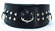 Кожаный ошейник для эротических игр имеет три крепления для поводка или наручников. Выполнен с применением металлических клепок.