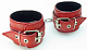 Красные наручники из натуральной кожи. Застегиваются при помощи массивных пряжек.