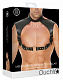 Эта сбруя с плотными наплечниками из чёрной кожи, с прикреплённым к нему ошейником с металлической пряжкой. 7 регулируемых ремешков: 2 на груди, 4 через плечи и 1 вокруг шеи. В нагрудном ремешке также есть кольцо спереди, позволяющее легко привязать или присоединить поводок. Для БДСМ-игр, также можно использовать как элемент гардероба Ремни на груди регулируются от 52 до 71 см. Плечевые ремни регулируются от 40 до 50 см. Воротник регулируется от 35 до 42 см.
