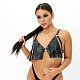 Черный октрытый кожаный бюстгальтер на регулируемых ремешках