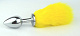 Металлическая анальная пробка с хвостиком лимонного цвета