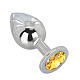 Гладкий большой плаг из отполированной до блеска стали с кристаллом лимонного цвета в основании. Металл - материал с большой теплопроводностью, сначала он будет прохладным, но быстро нагреется до температуры Вашего тела. Стальные игрушки можно нагревать или охлаждать с помощью воды.