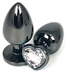 Черная металлическая анальная пробка с прозрачным стразом-сердечком - 7,5 см.