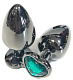 Черная металлическая анальная пробка с зеленым стразом-сердечком - 7,5 см.