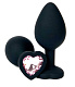 Черная силиконовая пробка с нежно-розовым кристаллом-сердечком - 8 см.