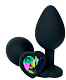 Черная силиконовая пробка с разноцветным кристаллом-сердечком - 8 см.