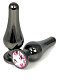Черная удлиненная анальная пробка с нежно-розовым кристаллом - 11,5 см.