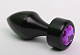 Чёрная анальная пробка с широким основанием и фиолетовым кристаллом - 7,8 см.
