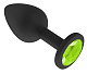 Чёрная анальная втулка с лаймовым кристаллом - 7,3 см.