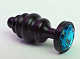Чёрная ребристая анальная пробка с голубым кристаллом - 7,3 см.
