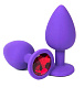 Фиолетовая анальная пробка с красным стразом - 6,8 см.