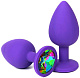 Фиолетовая анальная пробка с разноцветным стразом - 6,8 см.