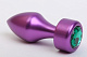 Фиолетовая анальная пробка с широким основанием и зелёным кристаллом - 7,8 см.