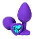 Фиолетовая силиконовая анальная пробка с голубым стразом-сердцем - 8 см.