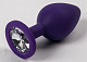 Фиолетовая силиконовая анальная пробка с прозрачным стразом - 8,2 см.