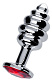 Изящная ребристая анальная втулка с красным кристаллом - 7 см.