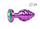 Коническая ребристая фиолетовая анальная втулка с зеленымм кристаллом - 8 см.