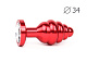 Коническая ребристая красная анальная втулка с прозрачным кристаллом - 8 см.