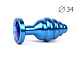 Коническая ребристая синяя анальная втулка с синим кристаллом - 8 см.