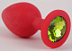 Красная силиконовая анальная пробка с лаймовым стразом - 6,8 см.