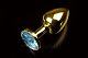 Маленькая золотистая анальная пробка с круглым кончиком и голубым кристаллом - 7 см.
