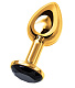 Маленькая золотистая анальная втулка с чёрным кристаллом - 7,2 см.