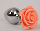 Металлическая анальная пробка с оранжевой розой - 10 см.