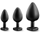Набор из 3 черных пробок с прозрачным кристаллом-сердечком Bling Plugs Training Kit