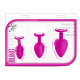Набор анальных пробок Bling Plugs Training Kit: конической формы для лёгкого и безопасного проникновения. Длина малой пробки - 7,6 см., диаметр - 2,5 см.