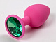 Розовая анальная пробка с зеленым кристаллом - 9,5 см.