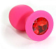 Розовая силиконовая анальная пробка с красным кристаллом - 7 см.