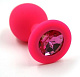 Розовая силиконовая анальная пробка с тёмно-розовым кристаллом - 7 см.
