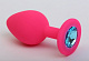 Розовая силиконовая пробка с голубым кристаллом - 7,1 см.