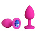 Розовая силиконовая пробка с синим кристаллом размера S - 6,8 см.
