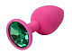Розовая силиконовая пробка с зеленым кристаллом - 7,1 см.