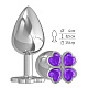 Серебристая анальная пробка-клевер с фиолетовым кристаллом - 9,5 см.
