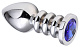 Серебристая анальная пробка на рельефной ножке с синим кристаллом - 9 см.