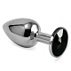 Серебристая анальная пробка с чёрным кристаллом размера S. Вес - 55 гр.