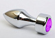 Серебристая анальная пробка с широким основанием и фиолетовым кристаллом - 7,8 см.