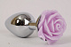 Серебристая анальная пробка с сиреневой розой - 9,5 см.