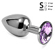 Серебристая анальная пробка с сиреневым кристаллом размера S - 6,8 см.