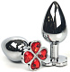 Серебристая анальная втулка с клевером из красных кристаллов - 8 см.